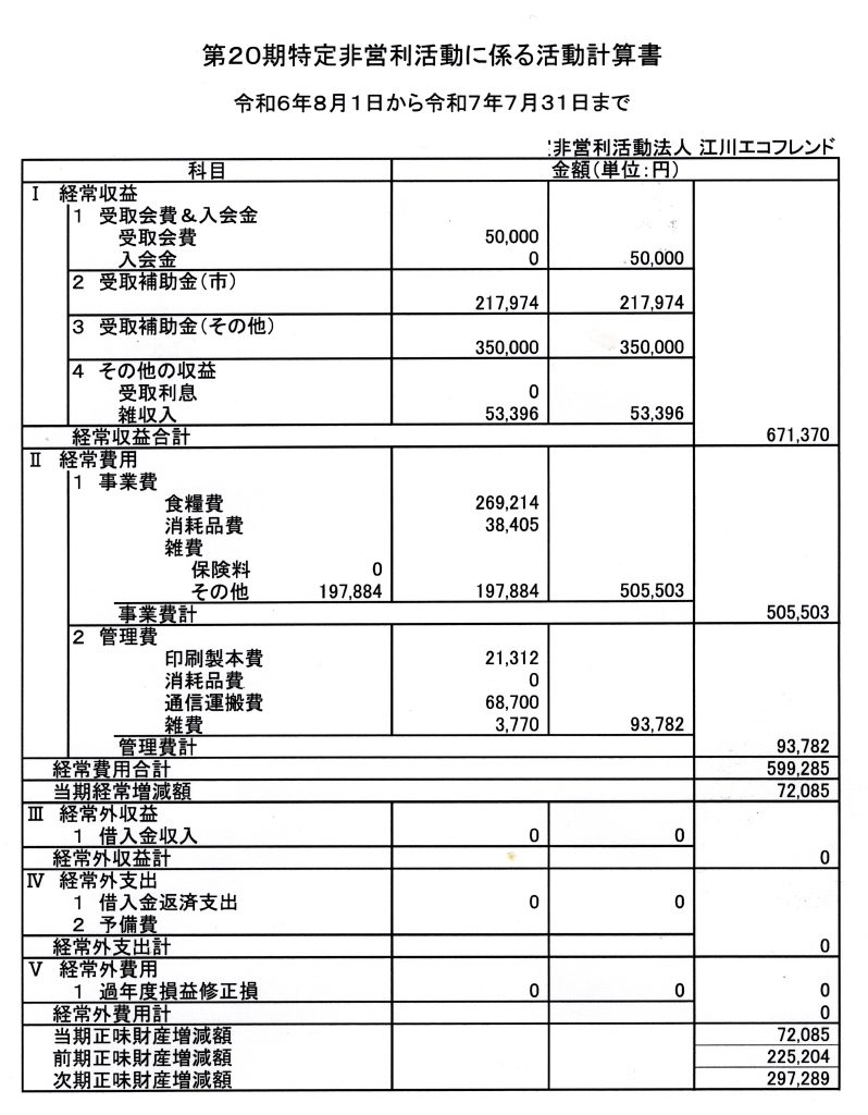 1号議案:第20期(2024年8月1日~2025年7月31日)事業報告・収支決算報告・監査報告
