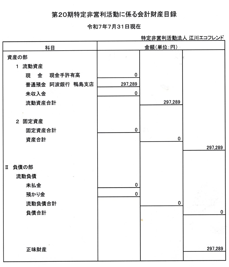 NPO法人江川エコフレンドの第21期定期総会が、鴨島町の青柳で開催されました。