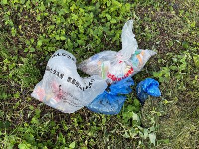江川湧水源と吉野川堤防周辺で集められたごみです。