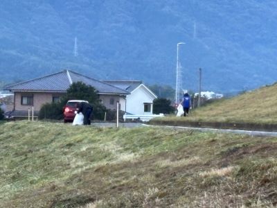 吉野川堤防の清掃作業は気持ち良さそうでした。