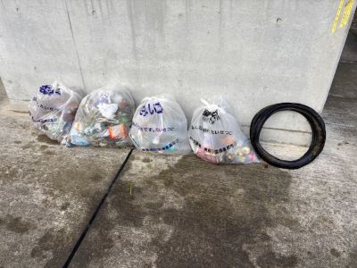 江川湧水源と吉野川堤防周辺で集められたごみです。