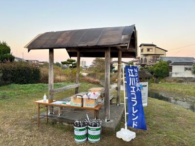江川湧水源受付には、時間前からボランティアの人たちが来てくれました。